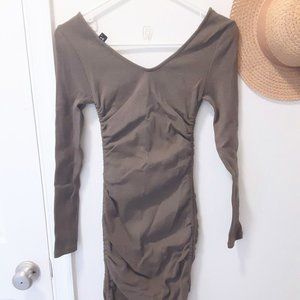 Hey Babe Olive Long Sleeve Cocktail Dress Ruched Sides Bodycon NWOT