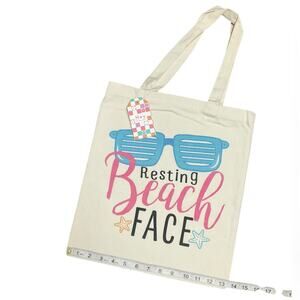 Hey Canvas Tote Bag with Blue and Pink Print NWT
