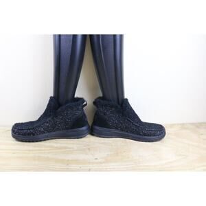 Hey Dude Boots Womens 8 Black Denny Sparkling Faux Fur Fleece Lined Ankle Bootie