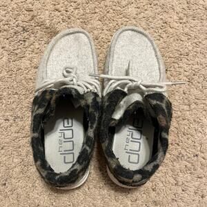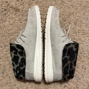 Hey Dude Brit Gray Cheetah Lightweight Casual Slip On Shoe Sz 6 Sneaker Comfort