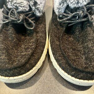 ~~Hey Dude Britt Navy Blue Gray Faux Fur Womens US10 Casual Cozy #121774900