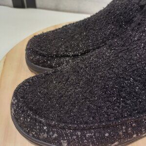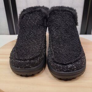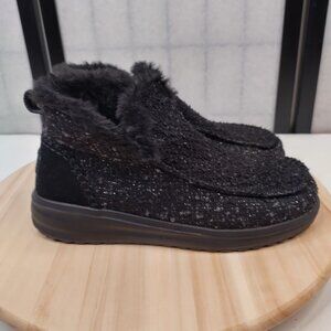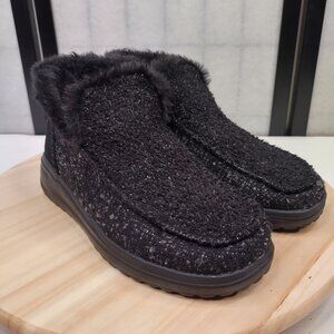 Hey Dude Denny Sparkling Faux Shearling Black Comfort Booties Women US 8