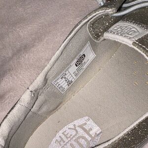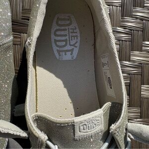 Wendy Funk Sparkle flats with a sleek design. Perfect for casual outings. The pictures don’t do them justice. See last picture for color in natural light. These are light and shiny and fun to wear!