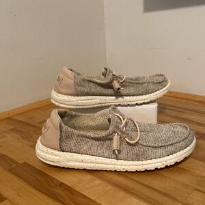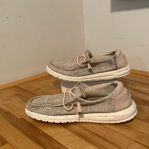 Hey Dude Gray & Beige Wendy Style Stretch Rose Slid On Loafer Flat Shoes Size 8