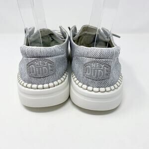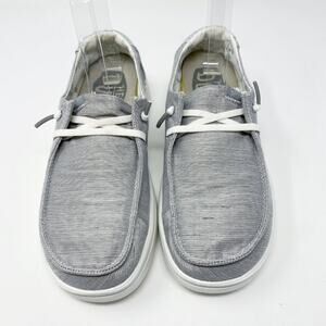 Hey Dude Gray/White Wendy Rise Slip Ons Lace Up Women's Size 7 Moc Toe EUC