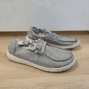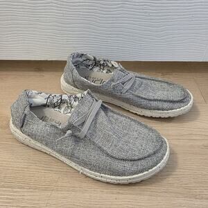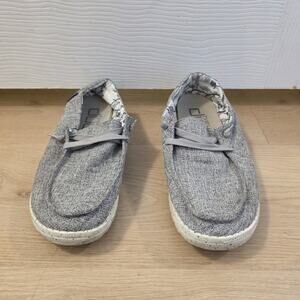 Hey Dude Grey White Slip On Casual Lightweight Wendy Linen Flats Size 7