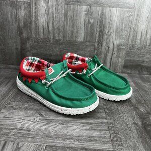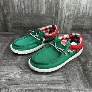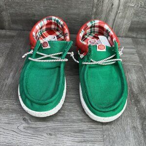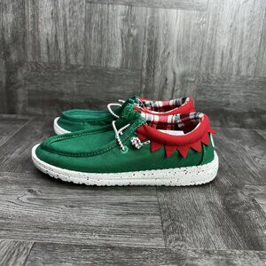 Hey Dude Kids size 12 Holiday Elf Green Red Slip On Shoes