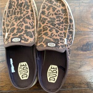 Hey Dude-Stylish leopard print sneakers. Comfortable and trendy. Perfect for casual wear.