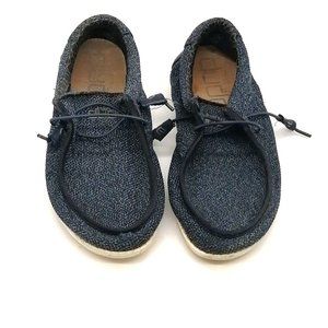 Hey Dude Mens Boat Shoe Wally Blue Heather Lace Up Square Toe Flat Heel 11