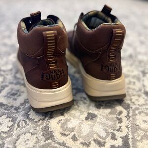 Men’s Stylish brown high-top boots by Hey Dude. Comfortable and versatile for any casual outing.