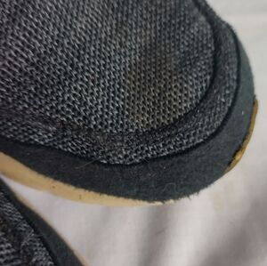 Is a dark spot on the tie on the left shoe but you can't see it unless it's up in your face and even then you can barley see it