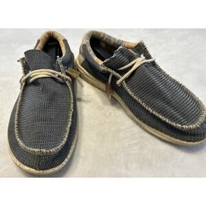 Hey Dude Mens Size 9 Wally Eco Sox Aegean Blue Tan Slip On Boat Shoes