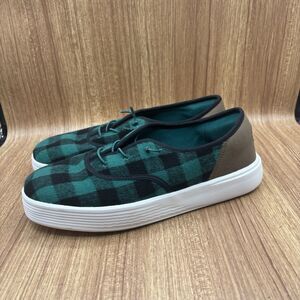 Hey Dude Mens Slip On Sneaker Shoe Conway Buffalo Plaid Green Casual Size 10 NEW