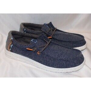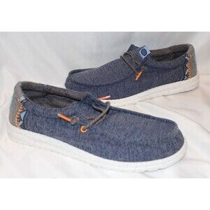 Hey Dude Men's Wally Casual Slip On Sneakers NAVY BLUE ORANGE SZ 10 NEW