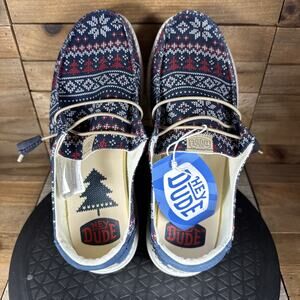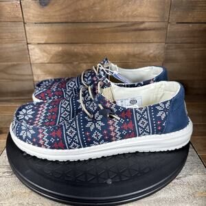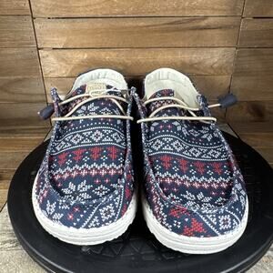 Hey Dude NWT Womens Sz 9 Wendy Winter Sweater Navy Ugly Slip On Shoes