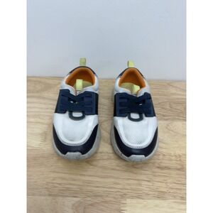 The Hey Dude Sirocco Play Colorblock White/Navy Kids Size C12 Slip On Sneaker is a stylish and comfortable athletic shoe for boys. This slip-on sneaker features a round toe, rubber outsole, and moderate cushioning level, making it ideal for casual occasions in the spring, summer, and fall seasons. The shoe is designed with a solid white color and navy accents, perfect for young boys who love a sporty and trendy look. Made with a foam insole and fabric lining, this shoe offers both style and comfort for everyday wear. C-12 kids. Good condition. See all photos of wear to shoes before purchasing