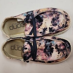 Vibrant tie-dye hey dude size 10. Easy slip-on design. Comfortable and stylish. Pre-owned in good condition. So comfortable!!!