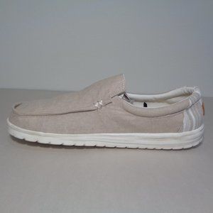 Hey Dude Size 13 M MIKKA Chambray Beige Cotton Slip On Loafers New Men's Shoes