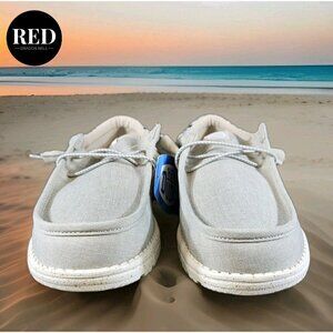 BRAND NEW - NWT - NO BOX -Stay stylish and comfortable with these Hey Dude Wally Funk Jacquard Bungee Beige Aztec Shoes Slip-On in Men's Size 8. These slip-on shoes feature a round toe shape and a lightweight, comfortable design with stretch for easy wear. The embroidered logo accents and solid beige color make them perfect for casual and travel occasions, while the rubber outsole ensures durability. With a low top shoe shaft style and standard shoe width, these shoes are a versatile addition to any wardrobe, suitable for all seasons.