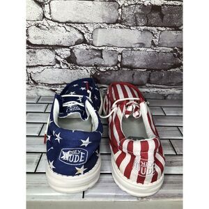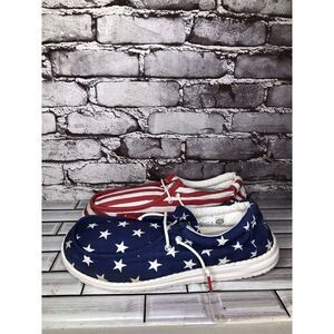 Selling Selling Hey Dude Wally Patriotic American Flag Casual Slip On Men Sz 12M US/45 USA