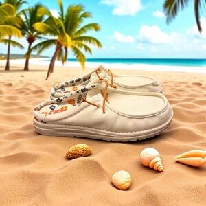 Hey Dude Wally Slip Luau. Beige Slip-On Loafers with Orange Accents. NWOT.