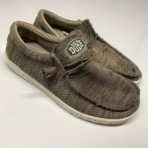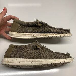 Hey Dude Wally Sox Brown Slip On Casual Shoe Mens Size 12 EU 45 Pre owned condition. Shows wear no holes or tears. See photos. Please see all pictures as they are part of the description. You will receive the exact item that you see in the photos. Same day shipping on items purchased before 1:30 p.m CST Mon-Fri. Unless stated items are pre owned and will show normal wear. Please ask any questions that you may have as I am happy to answer. Thank you for your interest.