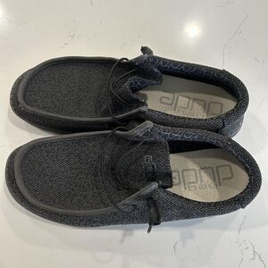 Hey Dude Wally Sox Micro Shoes Mens Size 12 black Gray Slip-On Loafers EU 45