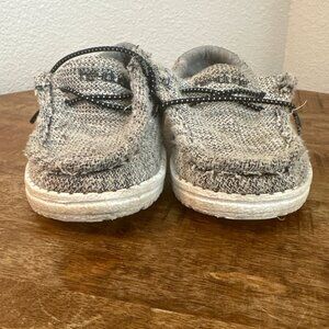 Introduce your little one to comfort and style with the Hey Dude Wally Sox Skater shoes. These lightweight, flexible shoes feature a soft, textured fabric upper in a versatile grey color, perfect for any outfit. The easy-on elastic laces make them a breeze to put on and take off, while the cushioned ankle collar ensures all-day comfort. Ideal for active toddlers, these shoes provide the perfect blend of support and freedom of movement.