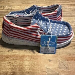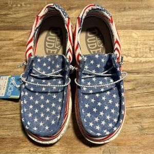 Hey Dude Wally Youth Patriotic Stars And Stripes Unisex Shoes Y3-L4 USA Is New With Tags.