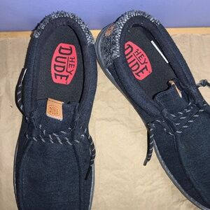 Hey Dude Wally flex knit lace up loafers Sz 12 black grey
