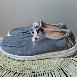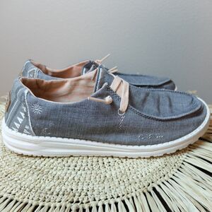Hey Dude Wendy Boho Embroidered Slip On Shoes Gray Size 8