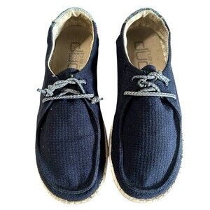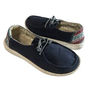 Hey Dude Wendy Boho Moc Loafers Shoes Womens Navy Blue Canvas Southwestern Aztec Comfort Ultra Lightweight