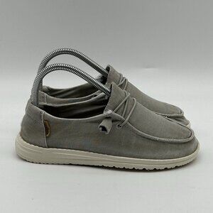 Hey Dude Wendy Chambray Light Grey Lace-Up Slip-On Loafers - Women's Size 5