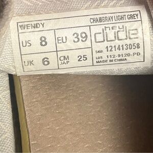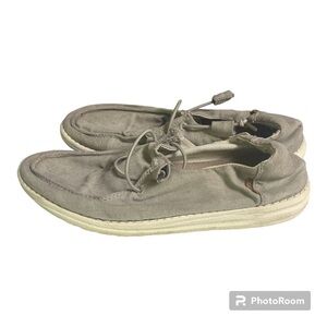 Hey Dude Wendy Chambray Light Grey Shoes. Women’s size 8, shoes show wear throughout but have life left in them.