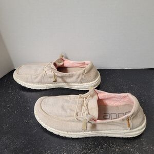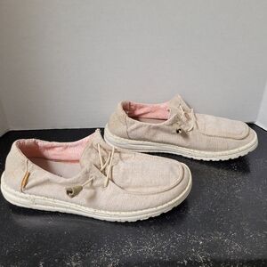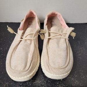 Hey Dude Wendy Chambray White Nut Color Size 9 Very good condition Smoke-free Home Happy Shopping