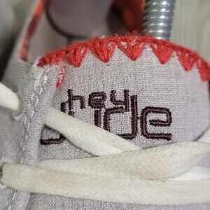 Stylish Hey Dude shoes with a comfortable design. Features a gray exterior with red accents. Perfect for casual wear.