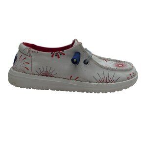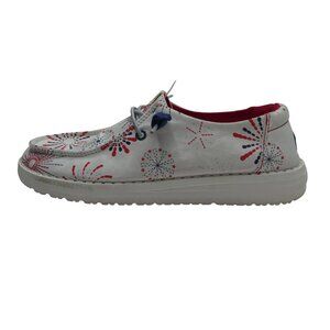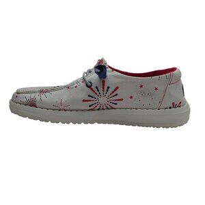 Hey Dude Wendy Fireworks Red White Blue Lightweight Slip On Loafers Womens 7