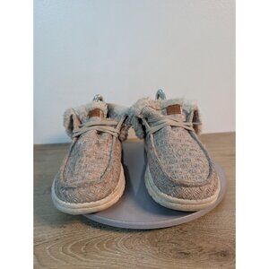 Hey Dude Wendy Fold Stitch Cozy Furry Boot Shoes Tan Beige Women's Size 8