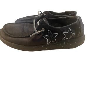 Hey Dude Wendy Girls Black /Black Star US Size Y2 Excellent