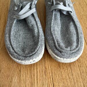 Hey Dude Wendy Gray Linen Slip On Lightweight Sneakers- Women's Size 10. Iron gray, super lightweight linen/canvas uppers, slip on style. In good condition.
