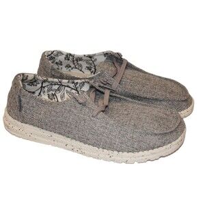 Hey Dude Wendy Linen Blend Women's SZ 6 Light Grey Lightweight Slip On Shoes NEW