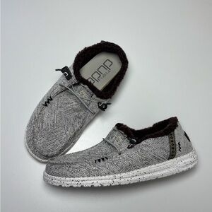 Hey Dude Wendy Shoes Women’s Size 9 “Salt & Pepper” Fleece Lined Loafers Warm