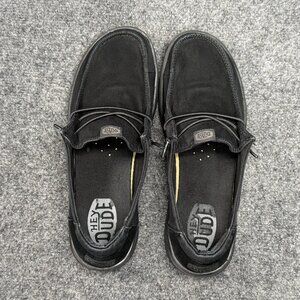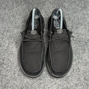 Hey Dude Wendy Slip Resistant Work Shoes Women's 9 Black Canvas Slip On Snekers