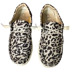 Hey Dude Wendy Women's Woven Casual Shoe Slip-On Cheetah Print Gray US 8