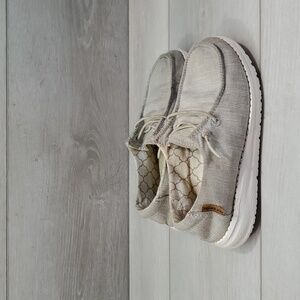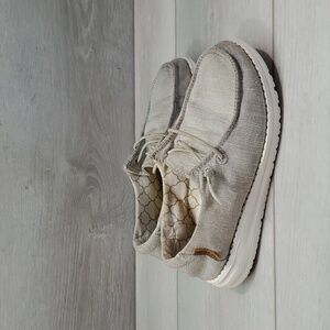 Hey Dude Wendy Youth Linen Beige Loafer Slip on shoes sz K11