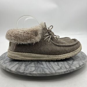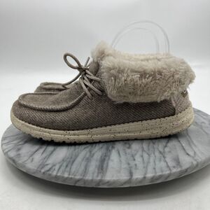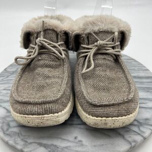 HEY DUDE WOMEN 8 SHOE BRITT NUT FUR LINED COZY WINTER BOOTIE CONVERTIBLE MID TOP