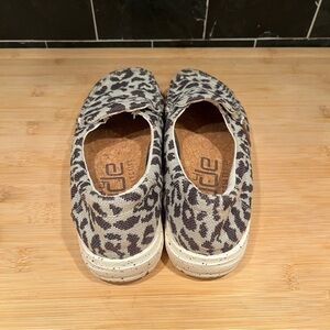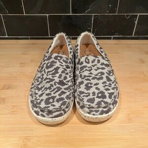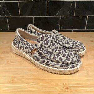 Hey Dude Women's Misty Woven Cheetah Grey Size 5 Loafers Slip Ons Comfort