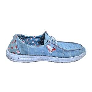 Hey Dude Women’s Size 9 Wendy Patriotic Denim Star Shoes USA Red White Blue 4th
