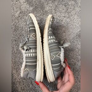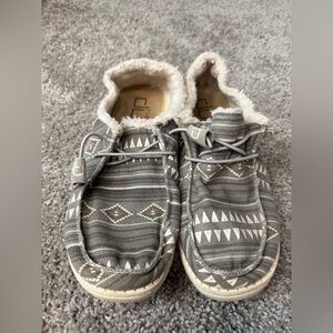 Hey Dude Women's Wendy Boho Stripe Gray Sherpa Lined Slip On Shoes