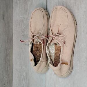 Hey Dude Womens Wendy Chambray peach Loafer Slip on shoes sz 7